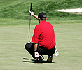 Always walk around the entire green to view every angle of the putt. Subtle slope variances can only be noticed this way. Crouch down behind your ball and cup your hands to shade your eyes to view the putt. This gives you a clearer picture of your putt by eliminating a wide view of the green. |