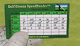 Copyright 2002-2011. Golf Green SpeedReader is a registered trademark of Hughes Innovations, Inc. All rights reserved. Backswing Guide, Backswing Card, and related information is copyright material and subjected to all rights reserved. USGA and the term Stimpmeter are both registered trademarks of the United States Golf Association. All cited articles are from outside sources and are not associated to this web site except for reference purposes for the reader. This specific webpage records the amount of visitors it receives to improve visitor experience. Hughes Innovations, Inc. P.O. Box 73037 Marietta, GA 30007 www.greenspeedreader.com